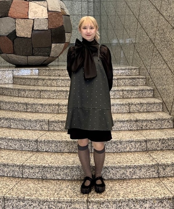 ボリュームのあるギャザースリーブが目を惹きレディーライクな雰囲気を演出。ボウタイの先端が輪になっているのでリボン結びをすると2つのリボンができ、可愛らしい印象をもたらします。1枚ではもちろん、レイヤードスタイルも楽しめる万能な1枚です。