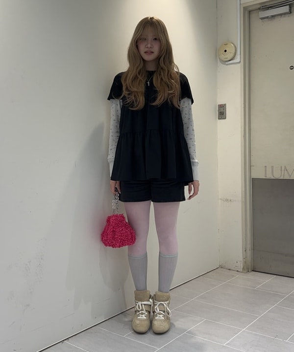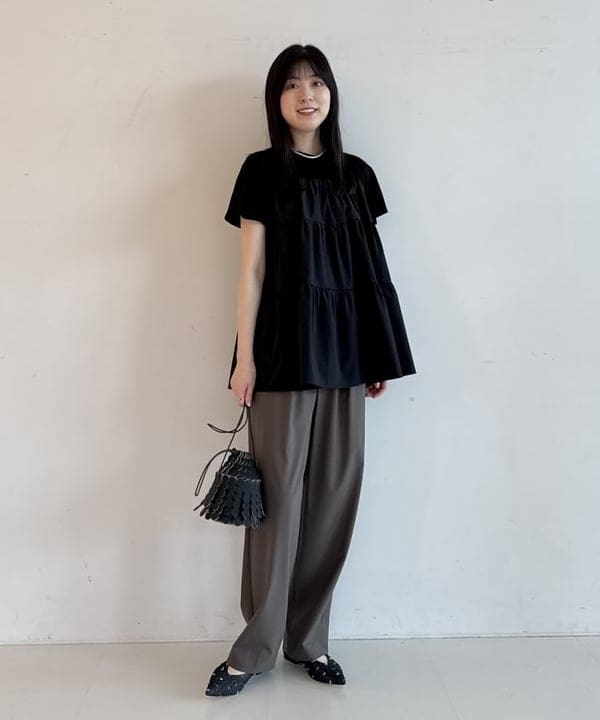サイズ感: カットソー部分はジャストサイズ、ティアード部分はふわっと広がるAラインです。