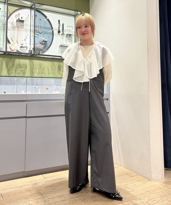 昨年ご好評いただいたスーツディティールサロペットがリニューアルして登場。 テーラードカラーの襟を付け、モードな雰囲気に仕上げています。 上質な素材かつシンプルなデザインなので、普段使いはもちろん、オケージョンシーンでの着用もおすすめです。
