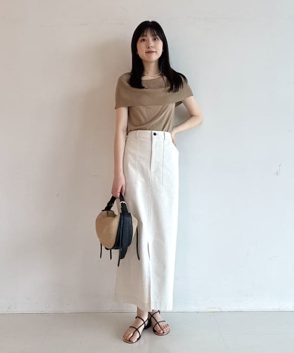 ブラック×ベージュの上品な配色と丸みのあるフォルムは、シンプルなワンピースやパンツスタイルに良く合います。