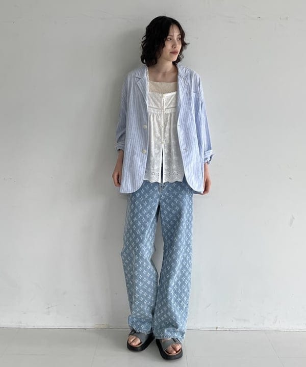 昨年好評だったジャカードデニムが今季も登場。 柄のモチーフが大きくなり、よりジャカード感を感じられる一着になっています。 LIGHT.BLUEはブリーチ加工、INDIGOはワンウォッシュ加工を施しています。
