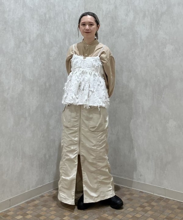 トレンドのカーゴディテールをあしらったIラインスカート。 目を引くフロントジップはスタイリングのアクセントとなり、着こなしにエッジをプラスします。 両サイドにあしらわれた大きめのポケットは、デザイン性だけでなく実用性も◎。