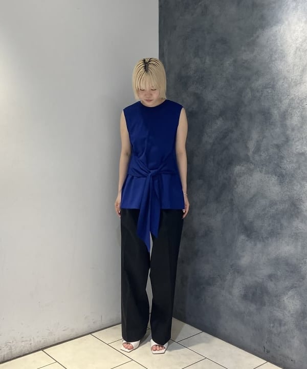 幅広いシーンで活躍するシンプルなワイドパンツ。タックインスタイルが映えるウエストベルトがポイントです。
