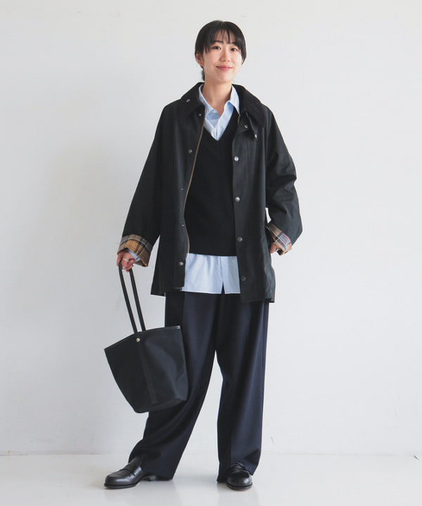 〈Barbour(バブアー)〉の人気モデル『BEDALE(ビデイル)』をベースに〈Demi-Luxe BEAMS〉が別注オーダーしたジャケット。袖を折り返したときに見えるチェックの裏地がアクセントをプラスします。