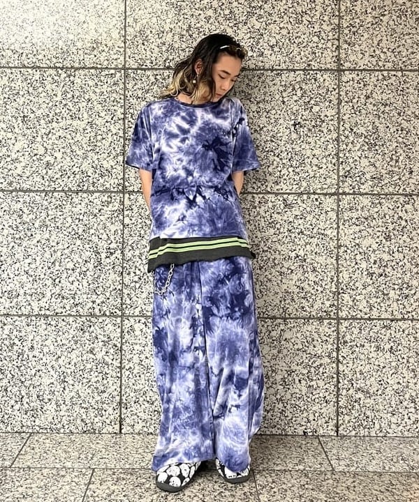存在感のあるデザインで、シンプルなトップスと合わせるだけで様になるアイテム。敢えてきれいめなシャツやジャケットと合わせるなど、ギャップを持たせたスタイルもおすすめです。また、同生地のトップス【品番:13-04-0440】 とセットアップスタイルもお楽しみいただけます。