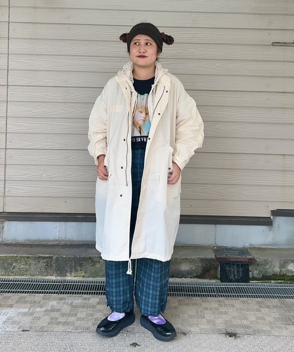 ナイロン素材の軽やかさを活かして、ウールやコーデュロイなど異素材のジャケットと組み合わせたスタイリングがおすすめ。上品さとカジュアルさを兼ね備えたデザインは、アウトドアからタウンユースまで幅広く対応します。