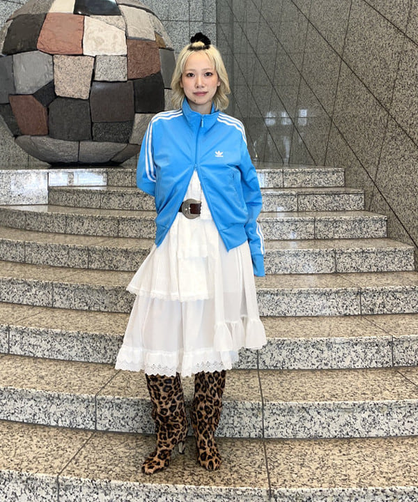 甘くなりがちなティアードスカートも、アシンメトリーなデザインと異素材の切り替えで、カジュアルなアイテムとの相性も抜群。スウェットやパーカー、Tシャツと合わせたミックススタイルや、パーカーのようなトップスと合わせたカジュアルなスタイリングもおすすめです。