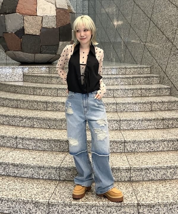ポイント: インナーはキャミソールにして透け感を思いっきり楽しむのがおすすめ。