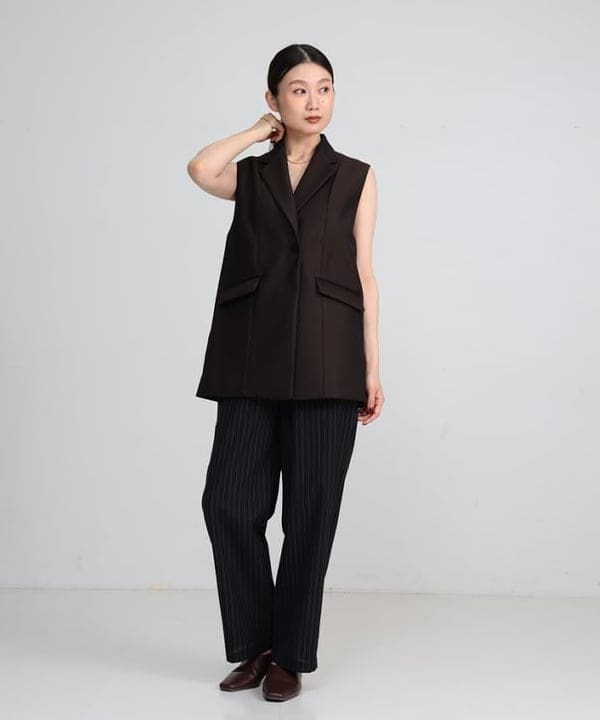 シャツやカットソーの上にレイヤードすることで、スタイルに知的な奥行きをプラス。大人の洗練さを演出できるワンドパンツとの組み合わせもおすすめです。