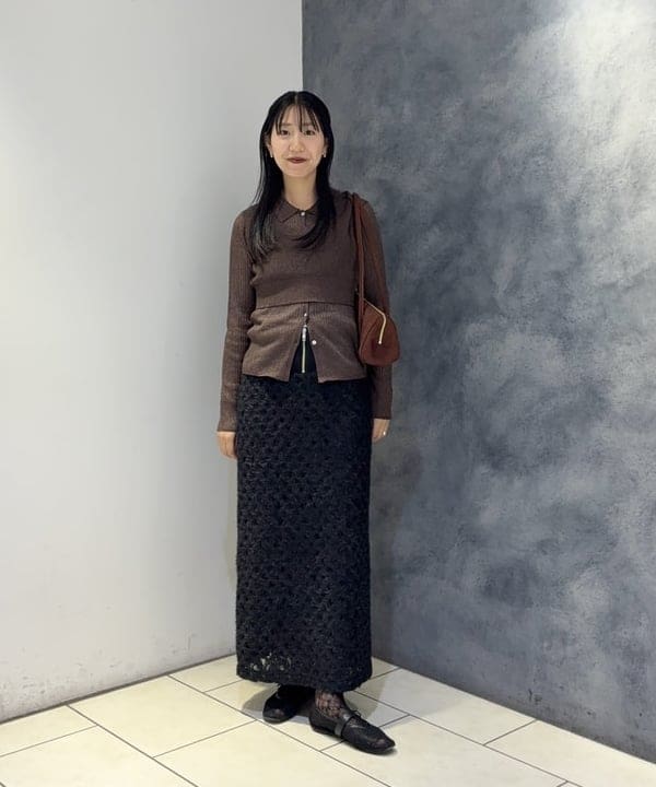 リブ編みのポロシャツと、メッシュのような編み地のベストがセットになったアイテム。それぞれ異なる編み地で表情に変化をつけ、レイヤードをより楽しめます。