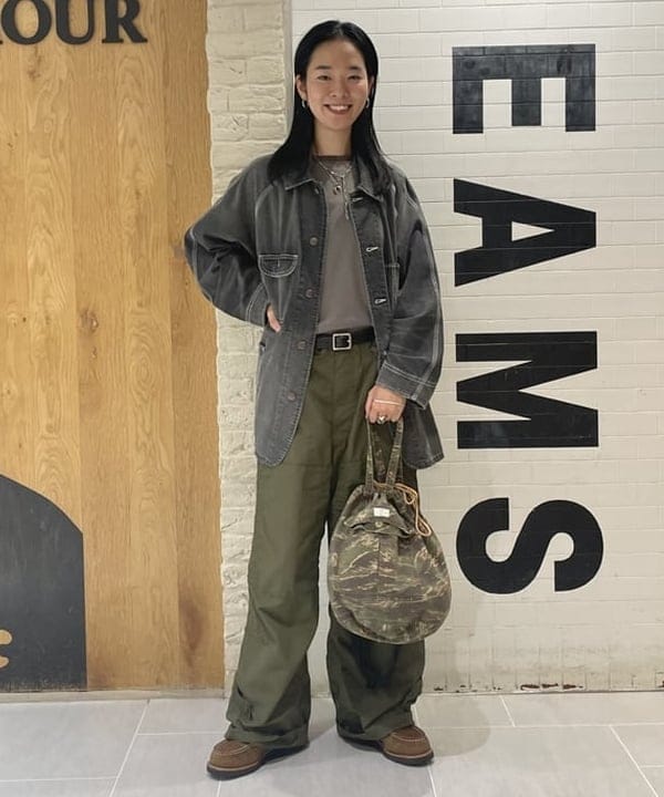シャツやスウェットなど、メンズライクなアイテムと合わせたスタイルが特におすすめです。シンプルながらも存在感のあるデザインなので、1枚羽織るだけでこなれた雰囲気を演出できるひと品。同素材のオーバーオール【品番: 13-17-0174-585】とのセットアップも可能で、統一感のある着こなしも楽しめます。