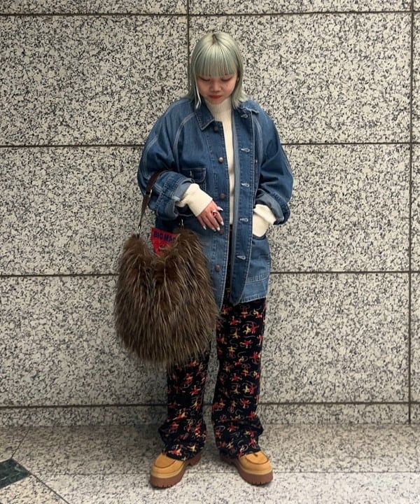※本製品は、デザインの一部として意図的に切りっぱなしなどのダメージ加工を施しております。そのため、1点1点、加工の表情やほつれ具合が異なるのが特徴です。生地切れや糸切れが発生している部分もございますので、予めご了承ください。