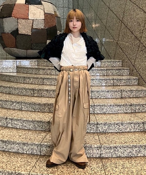 ポイント: 腰のジップの開閉でボリュームやシルエットが大きく変わるので着回し抜群!