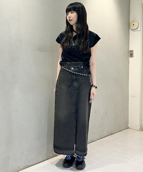 内側左脇にはループ状のコードを付けているので、様々なアレンジが楽しめます。首や腕に通したり、あえて裾から垂らしたりすることで、着こなしに動きと個性をプラス。きれいめパンツからカジュアルなデニムまで、幅広いボトムスと相性抜群◎