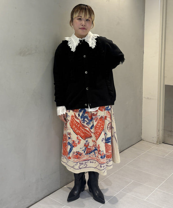 ミディ丈のボトムスに合わせたスタイリングがおすすめです。