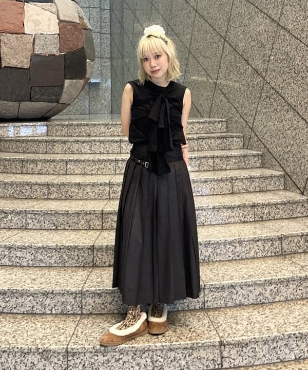 • Ray BEAMS 「レザーライクプリーツ スカート」|スカート|BLACK