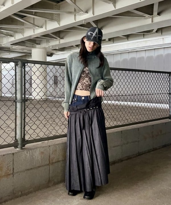 • Ray BEAMS 「レザーライクプリーツ スカート」|スカート|GREY