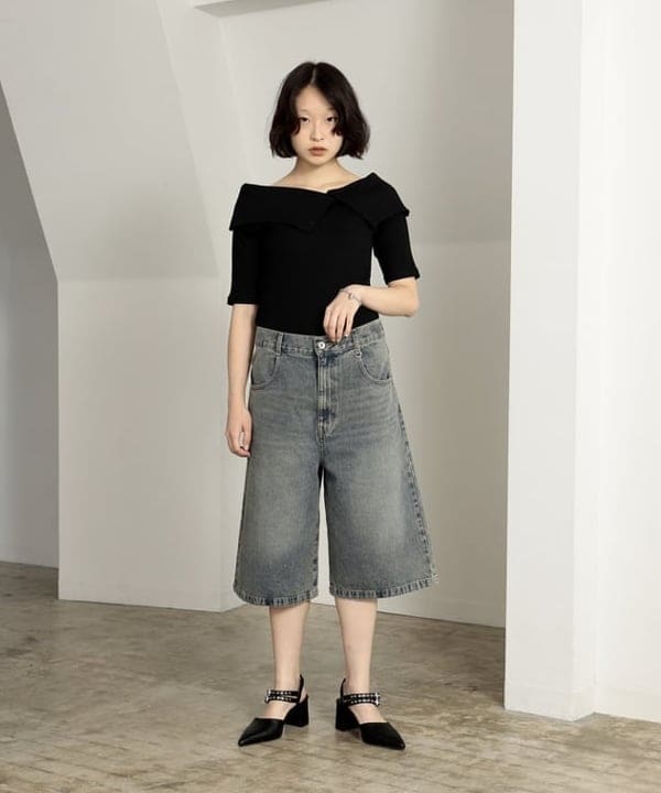着こなしに鮮度をプラスするハーフパンツ。中肉デニム生地にオーバーダイ加工に色味を加えることで、ニュアンスのあるカラーに仕上げました。シンプルなデザインで様々なアイテムと好相性。左前のベルトループにはDカンを配し、チェーンやチャームでアレンジも楽しめます。