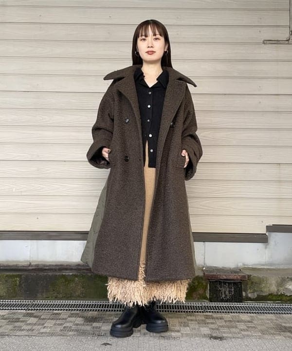 昨年ご好評いただいた人気アイテムが、素材とデザインをアップデートして今年も登場。横に広がった大きな襟は、ボタンの留め方で表情が変わり、様々な着こなしを楽しめます。ロング丈でも重くなりすぎないよう着心地にもこだわったひと品です。