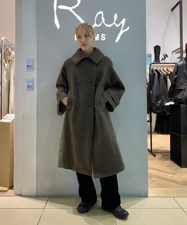 ポイント: 見る角度で印象が変わるコート。裏キルティングで軽く着やすいのも魅力。