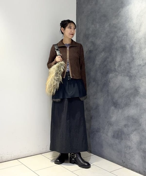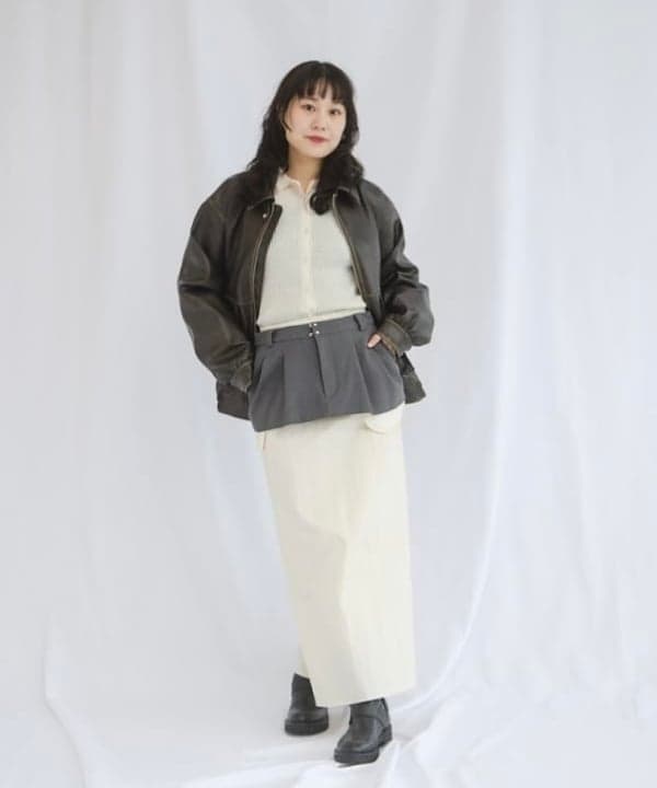 セットで着用すれば、異素材の組み合わせが目を引く個性的なスタイルに。内スカートはシンプルなタイトスカートとして、外スカートはお手持ちのパンツやワンピースにレイヤードするなどそれぞれを別々に着回すことで、幅広いコーディネートが楽しめます。
