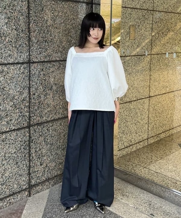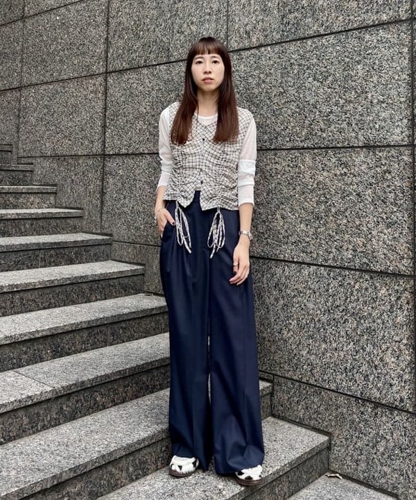 ウエスト後ろにゴムを忍ばせながらも、ヒップにボリュームが出過ぎないすっきりとした設計。ワイドシルエットでありながらAラインにならず、美しさを引き出すパンツです。気になる体型を自然にカバーしながらも、モダンでスタイリッシュな印象を演出します。