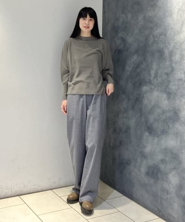 ポイント: ラフ過ぎないイージーパンツ。ストライプの柄がメンズライクな印象を与えてくれます。
