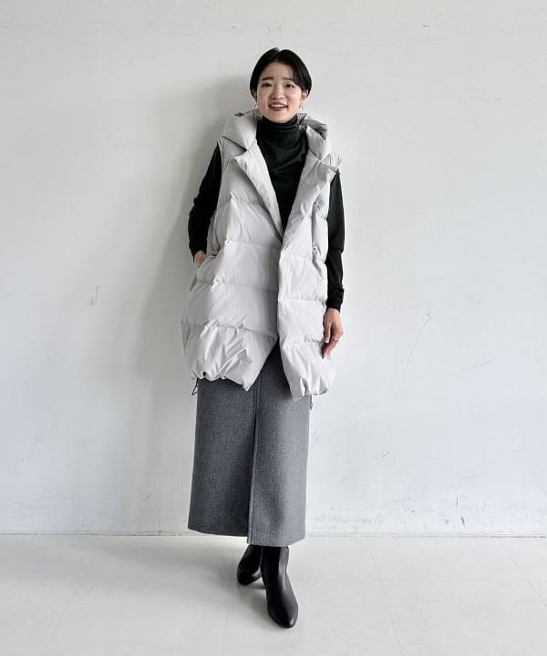 ポイント: ネックを折り返したり、そのままクシュっとしたり、首元のアレンジも楽しめます。