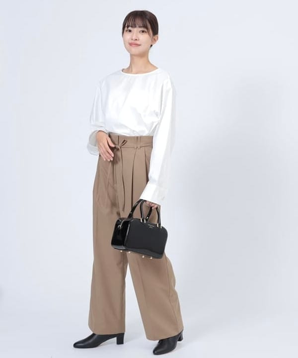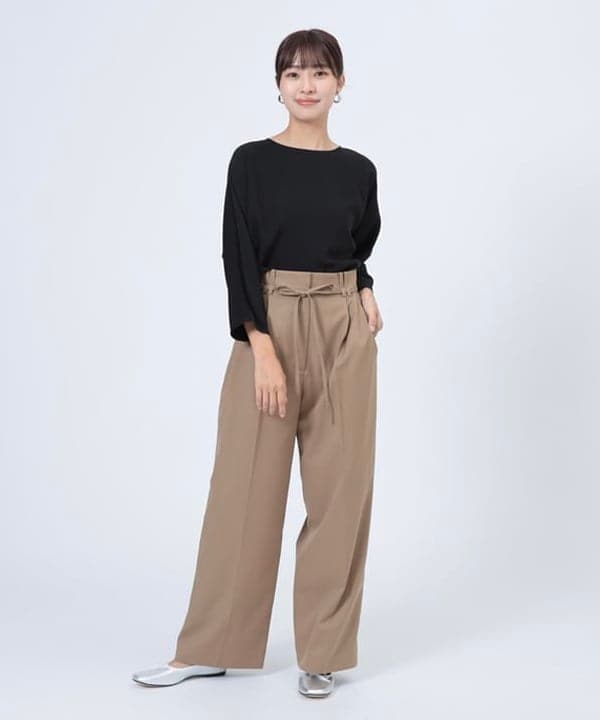 ポイント: ワイドシルエットですが、タック入りですっきり着用できます。