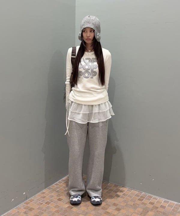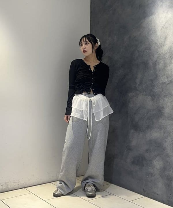 フリルベルトがセットになったスウェットパンツ。シンプルなストレートで大人が履きやすいシルエットですティアードのフリルがトレンド感をプラス。