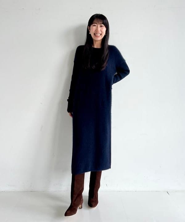 〈Demi-Luxe BEAMS〉で長く愛されているフラッフィシリーズ。ふわっとした甘めのフロントデザインにすっきりとしたリブ編みの袖が特徴で、パーツによって素材と編地が異なる表情豊かなニットワンピースです。