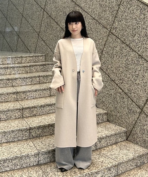 〈Demi-Luxe BEAMS〉定番のウールリバーロングコート。1着で2つのカラーが楽しめ、スタイリングの幅を広げてくれるリバーシブル仕様です。