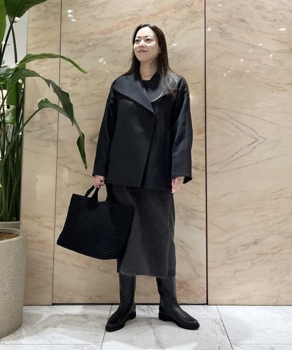 サイズ感: ゆったりとしたサイズ感です。厚手のニットを合わせてもシルエットを崩すことなく着用できます。
