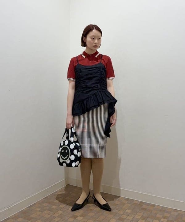 Tシャツやタイトなニットの上に重ねるビスチェ風のレイヤードがおすすめ。また、あえてキャミソールをインナーに重ねて、裾からフリルだけを覗かせる上級者な着こなしも素敵です。デニムでカジュアルダウンさせたり、スラックスでモードに仕上げたりと、合わせるボトムス次第で幅広い表情を楽しめます。