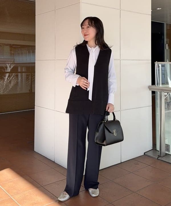 ジャケットやベストのインナーとしてももたつきにくく、レイヤードがすっきり決まるのが魅力。通勤スタイルはもちろん、デニムやワイドパンツと合わせれば程良く力の抜けたきれいめスタイルが完成します。