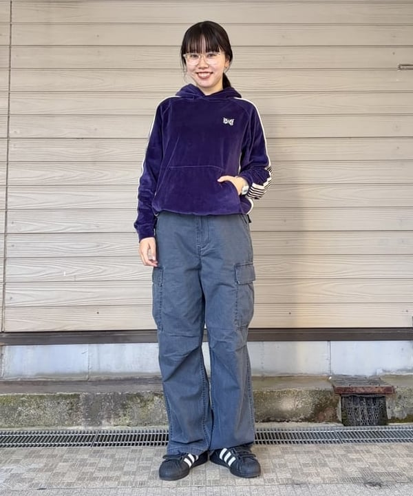 存在感のあるワイドシルエットは、シンプルなトップスと合わせるだけでコーディネートが成立。スウェットやTシャツ、ミリタリーシャツとの相性はもちろん、同シリーズのブルゾン【品番:13-18-0749-791 】とのセットアップスタイルもおすすめです。