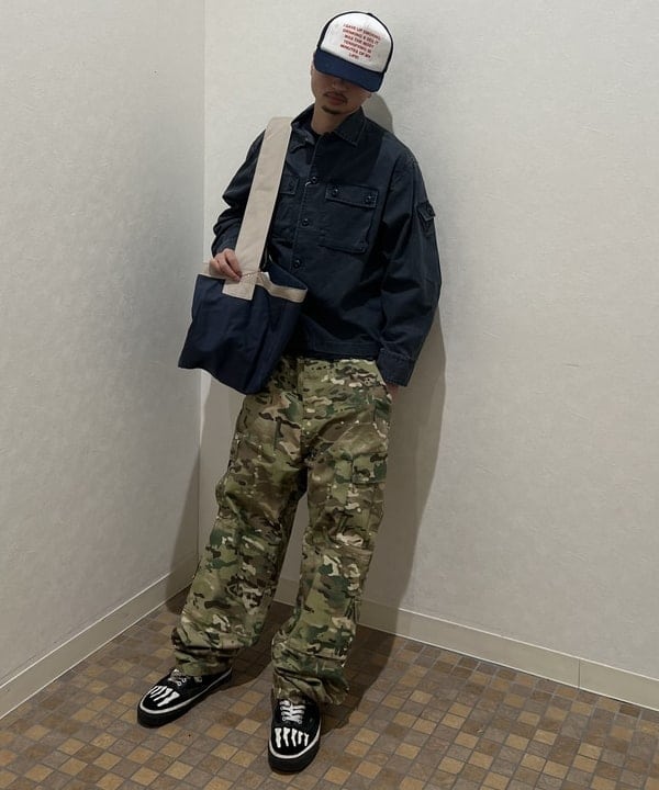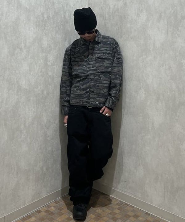 1960年代のU.S. ARMYタイガーカモシャツをベースに、袖にボリュームを持たせた現代的シルエットへとアップデートをしたひと品。古着特有の色褪せや経年変化を実際の生地加工で丁寧に再現しました。