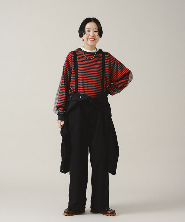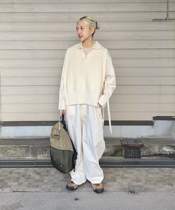 ワーク感のあるシルエットはカットソーやスニーカーと合わせてデイリーに。袖を胸元で結ぶと軽快な雰囲気に変わり、ホルターネック風にするとモード感のある女性らしい着こなしにも対応。インナー次第でロングシーズン活躍します。