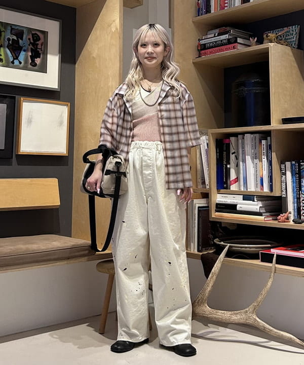 シンプルなシャツやTシャツ、スウェットなど合わせるだけで「こなれ感」のあるスタイルが完成します。