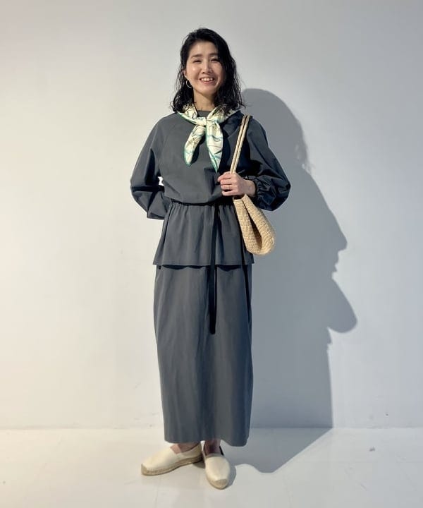 体のラインを拾いすぎない、程良いゆとりのあるレギュラーフィット。トップスのボリューム感に対し、スカート部分は広がりすぎないすっきりとしたラインで、全体のバランスを美しく整えます。