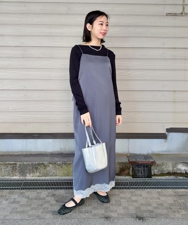 フランスの繊細なリバーレースを裾にあしらったキャミソールワンピース。控えめながらも印象に残る華やかさを演出します。